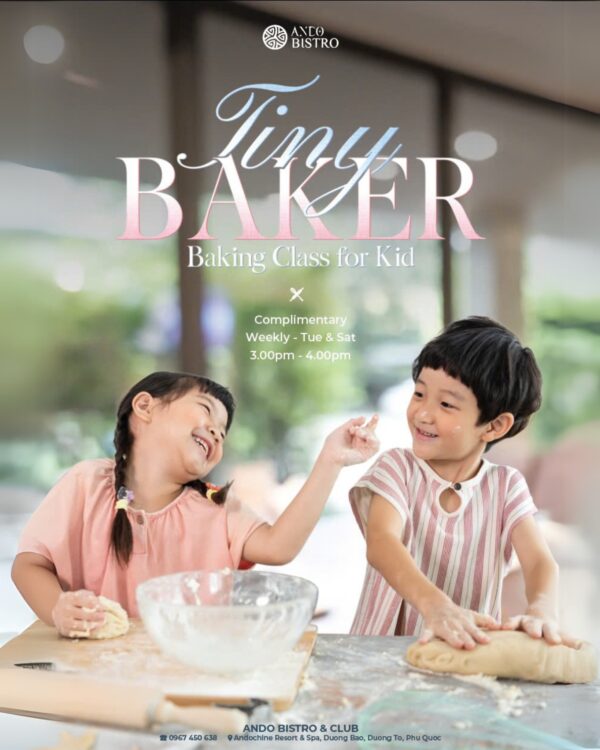 Looking for a fun and educational activity for your child during your stay in Phu Quoc? Don’t miss out on Tiny Baker – a complimentary baking class exclusively for in-house guests of Andochine Resort & Spa, held every Tuesday, Saturday & Sunday from 03:00 PM to 04:00 PM at Ando Bistro & Club.
