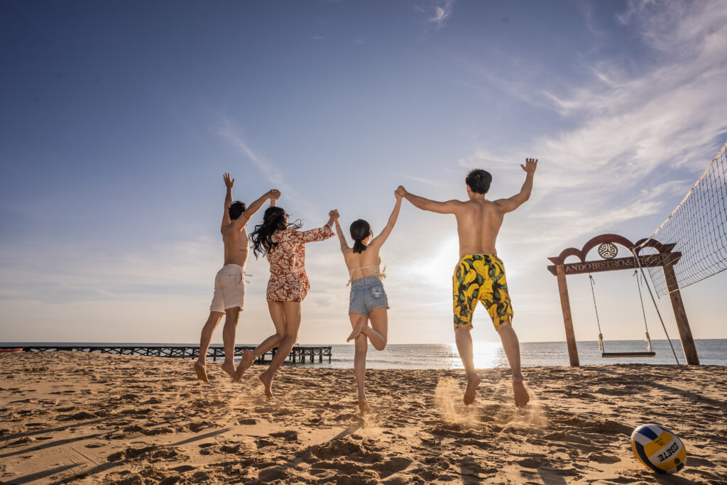 Every day is an opportunity to exercise in the vast natural space. Visitors can freely kayak or paddleboard along the tranquil coastline, or simply immerse themselves in a lively game of beach volleyball on the soft white sand, all completely free.
