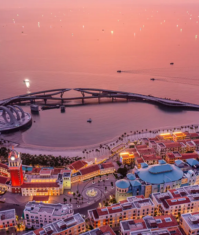 A picturesque Mediterranean-inspired town on the southern tip of the island, known for its colorful buildings, art installations, coastal square, and the iconic Kiss Bridge — one of the most romantic spots to watch the sunset in Vietnam.