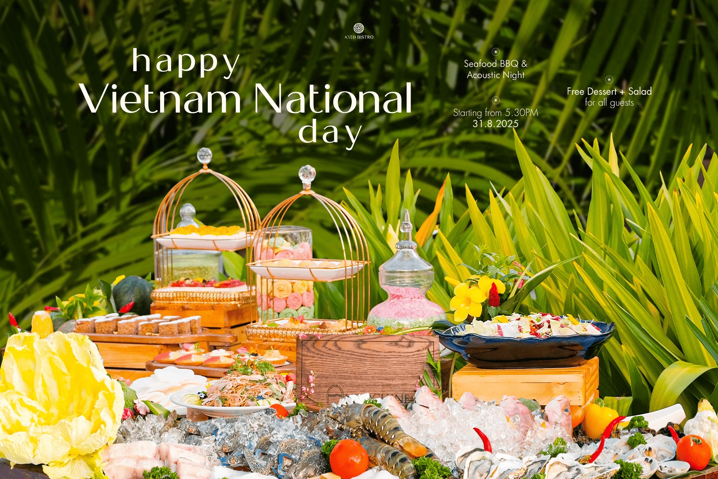 Hưởng ứng không khí sôi động chào mừng ngày Quốc Khánh, còn gì tuyệt vời hơn khi cả gia đình quây quần bên bàn tiệc thịnh soạn, hải sản tươi sống và những phần steak thượng hạng cùng tỏa hương trên bếp than hồng.