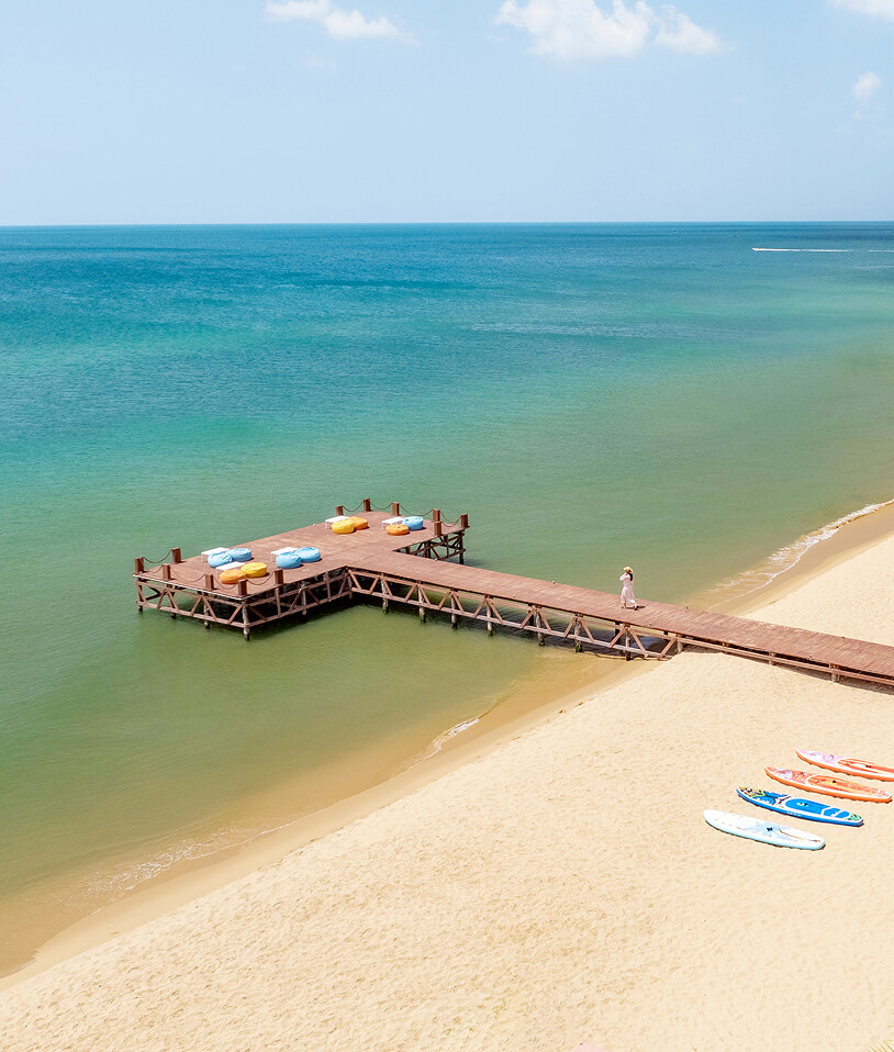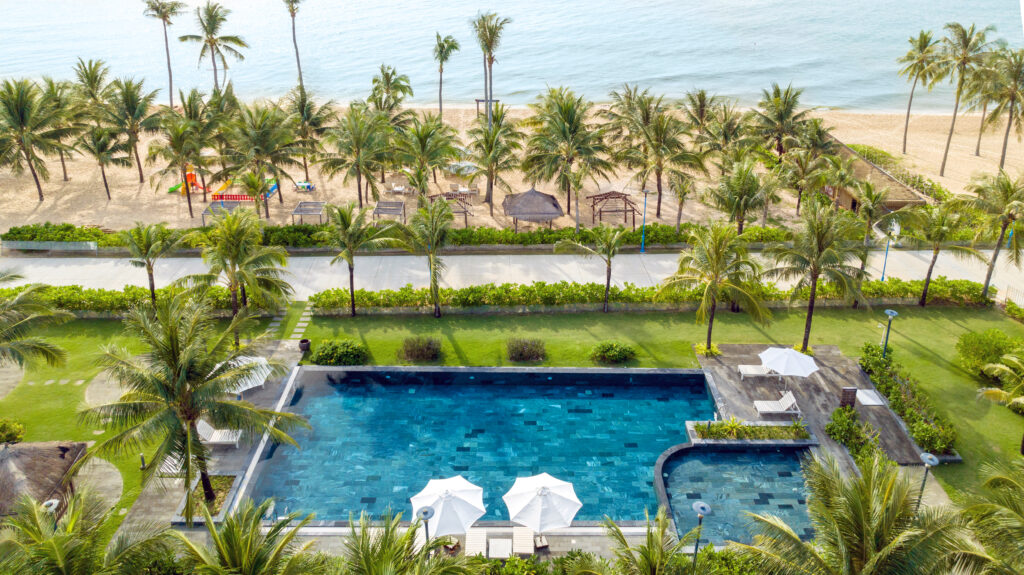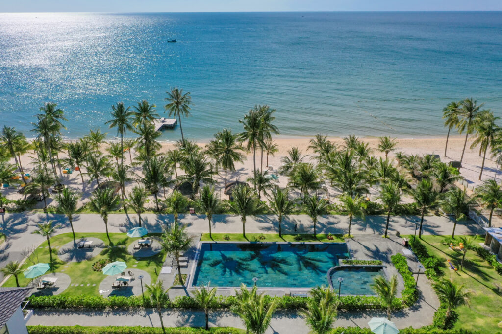 Bãi biển riêng với dải cát trắng mịn nằm ngay trước resort mang đến không gian yên tĩnh, trong lành cùng làn nước biển trong vắt.